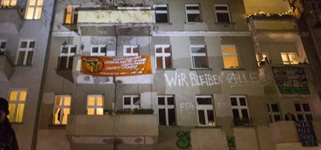 Friedel 54 in Neukölln. Auf die Sitzblockaden gegen die Räumung